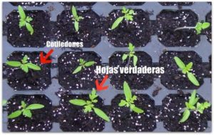Los cotiledones son las primeras hojas que aparecen al germinar una semilla. La mayoría de hortalizas tienen dos, y lo normal es que se caigan